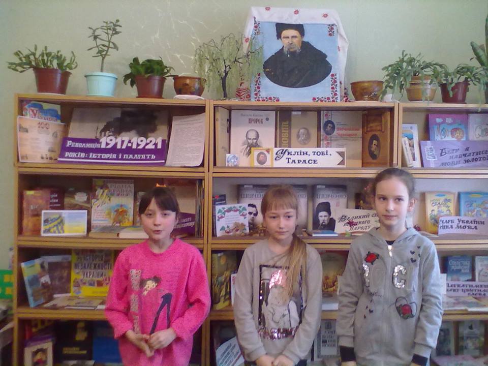 З нагоди цієї визначної дати відділом обслуговування дітей 19 березня була проведена літературна вікторина «Шевченкове слово у моєму серці». Учасниками якої стали учні 4-х класів НВК «ЗОШ І-ІІІ ступенів №1». Спочатку діти переглянули фільм «Край, де народився Геній» і уявно перенеслися в ці святі для кожного українця місця, де минули дитячі роки Тараса, звідки пролягли його дороги у широкий світ. Бібліотекар Таїса Барвінок ознайомила учнів з сторінками життя і творчості поета. Діти, створивши дві команди, активно відповідали на питання вікторини. Розгадували ребуси та кросворди за творами Тараса Шевченка. Змагалися, хто краще знається на поезії Кобзаря, а також самі натхненно читали вірші поета. Учні продемонстрували неабиякі знання та ерудицію. Захід завершився переглядом пластилінового мультфільму «Садок вишневий коло хати» і подарував приємні емоції всім присутнім.